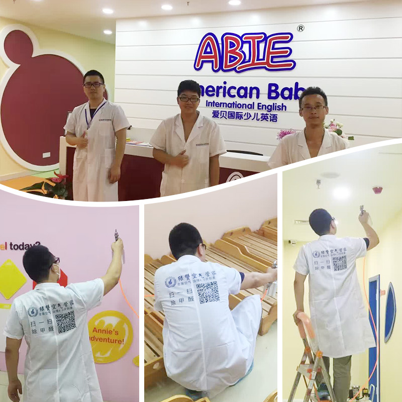 客戶(hù)需求:愛(ài)貝國(guó)際少兒英語(yǔ)是新裝修的,室內(nèi)存在裝修異味,校方考慮到孩子們的健康問(wèn)題,讓孩子們擁有一個(gè)良好的學(xué)習(xí)環(huán)境,特地邀請(qǐng)我們創(chuàng)綠家的工程師們?nèi)プ隹諝鈨艋卫矸?wù)。