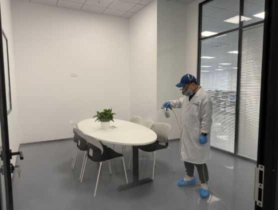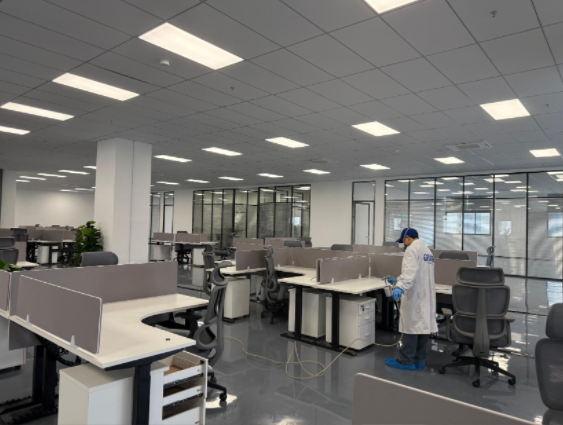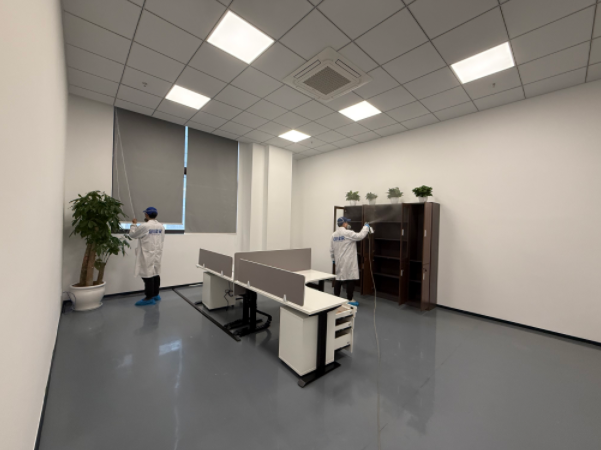 杭州紐鼐機(jī)器人有限公司深耕通用設(shè)備制造與機(jī)器人研發(fā)領(lǐng)域,其 1600㎡辦公空間坐落于杭州蕭山區(qū)經(jīng)濟(jì)技術(shù)開發(fā)區(qū),涵蓋開放式研發(fā)區(qū)、獨(dú)立辦公室、會(huì)議室、設(shè)備陳列區(qū)、員工休息區(qū)等多個(gè)功能區(qū)域。因辦公空間新裝修完成,全屋采用大量辦公定制柜體、隔斷板材、墻面涂料、地毯軟裝,加之設(shè)備陳列區(qū)柜體密集、部分研發(fā)區(qū)域通風(fēng)條件有限,形成了甲醛、TVOC 等多元有害氣體污染源;同時(shí)作為科創(chuàng)研發(fā)企業(yè),辦公區(qū)各類精密儀器、研發(fā)設(shè)備密集,對(duì)除醛治理的安全性、無腐蝕性、高效性提出嚴(yán)苛要求,既要實(shí)現(xiàn)深層除醛,又要確保治理過程不損傷精密設(shè)備,保障企業(yè)后續(xù)研發(fā)工作順利開展。企業(yè)在參考杭州除甲醛品牌排名、對(duì)比多家杭州除甲醛公司后,認(rèn)準(zhǔn)創(chuàng)綠家的工裝治理經(jīng)驗(yàn)與科創(chuàng)空間服務(wù)案例,最終選定創(chuàng)綠家為本次 1600㎡辦公空間的專屬除醛服務(wù)商。