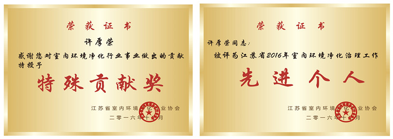 創(chuàng)綠家環(huán)??萍技夹g(shù)總監(jiān)、南京分公司負(fù)責(zé)人許厚榮先生也因此獲得了多項(xiàng)殊榮。