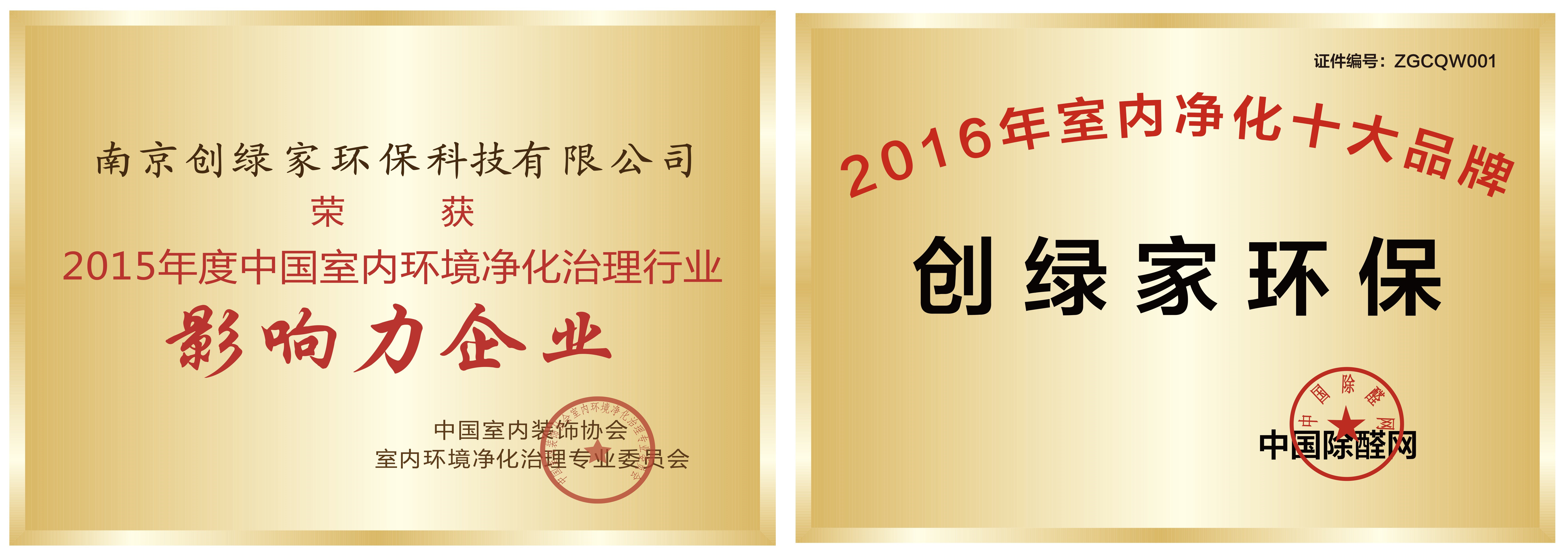 創(chuàng)綠家環(huán)保科技在中國(guó)室內(nèi)空氣治理行業(yè)頗有影響力,曾在2015年榮獲凈化委頒布的2015年度中國(guó)室內(nèi)環(huán)境凈化治理行業(yè)影響力企業(yè);在2016年榮獲中國(guó)除醛網(wǎng)評(píng)選2016年室內(nèi)凈化十大品牌之首等殊榮,也是國(guó)美管家的核心合作伙伴。