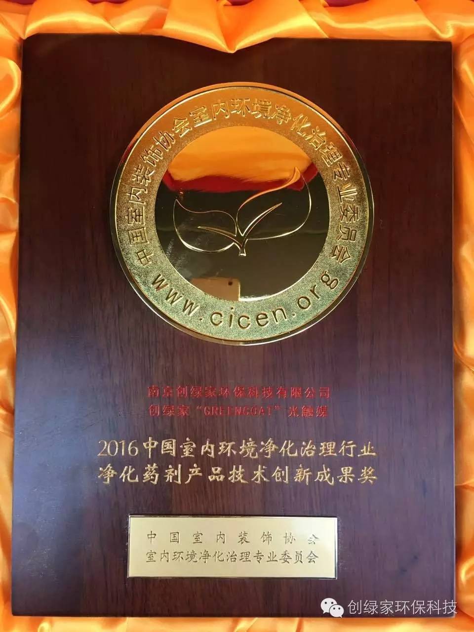 同時,創(chuàng)綠家在11月底由中國凈化委組織在中國北京召開的“2016中國室內環(huán)境凈化治理行業(yè)創(chuàng)新技術大會暨‘平臺+’‘服務+’‘健康+’戰(zhàn)略發(fā)布會”中,也獲得過“凈化藥劑產(chǎn)品技術創(chuàng)新成果獎”,可謂是雙喜臨門。