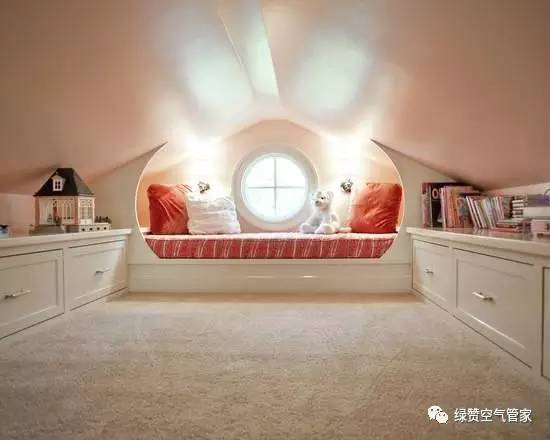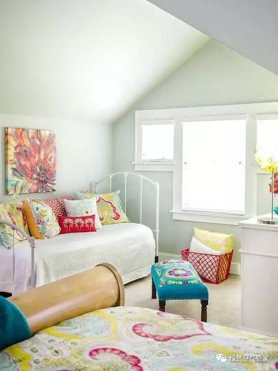 小編的話:薄荷綠的漆面粉刷閣樓墻壁,為低矮的空間增添明亮的清新,盡可能的加大采光空間,引入陽(yáng)光,多彩絢麗的軟裝搭配出一個(gè)歡樂(lè)的空間氛圍。